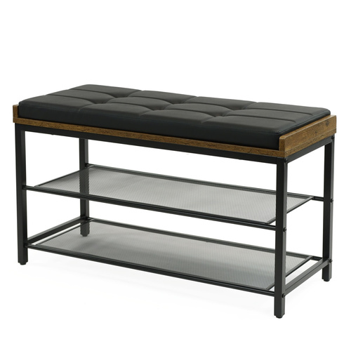 - Półka na buty z siedziskiem Belivio NELLY Rustical Oak - tapicerowana półka na buty do przedpokoju